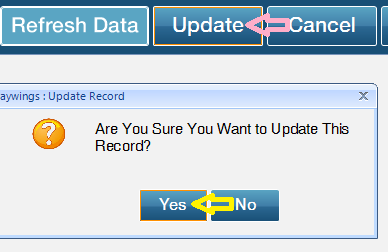 - A message pops "Are you sure you want to update this record ", Click on Yes button.