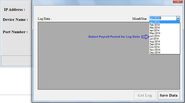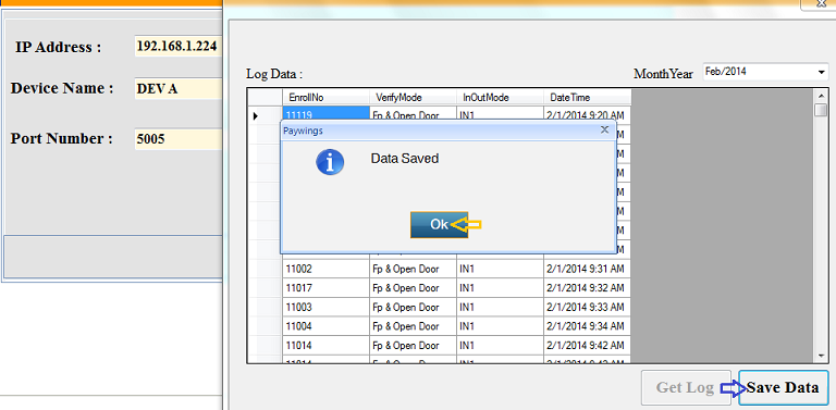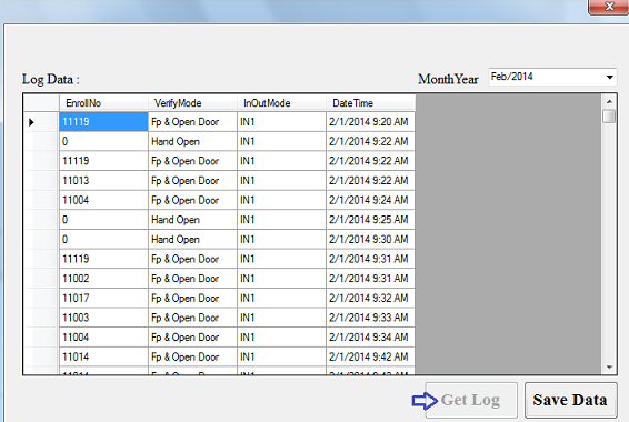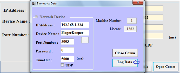 - Click on Log Data Button to fetch log from Biometric Device.