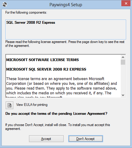 - Upon launching PaywingsSetup.exe, the setup checks for the prerequisites availability. It automatically downloads them if they are missing.