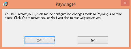 - User shall click on Yes Button to restart system for the configuration changes made to Paywings to take effect.