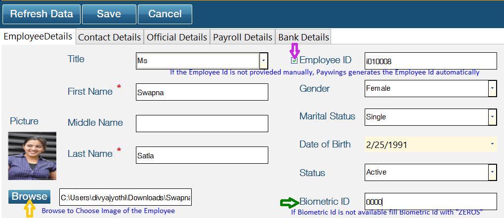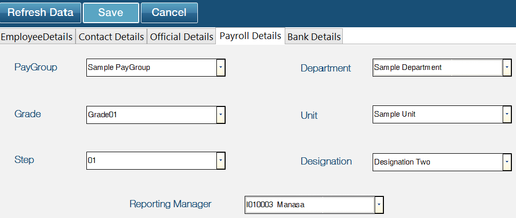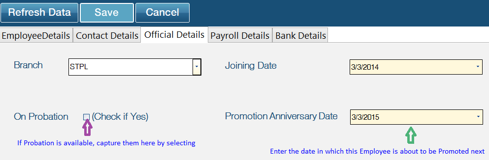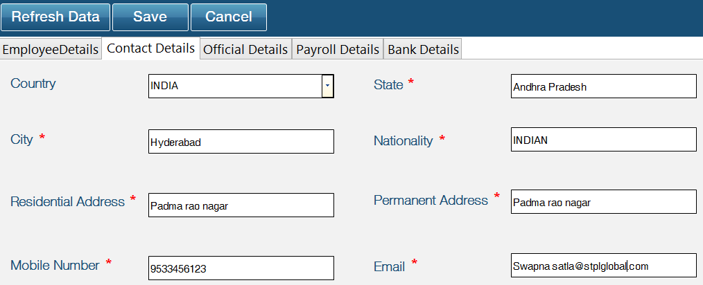 A person who is hired to provide services to a company on a regular basis in exchange for compensation.The Details of Employees are saved in this module. such as, contact details,payroll details, Bank Details etc